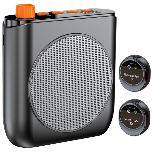 • This is a comfortable and portable amplifier and speaker, weighing 0.5 pounds, equipped with a wireless lapel microphone, eliminating the need for traditional ear-mounted microphones for a more convenient user experience.