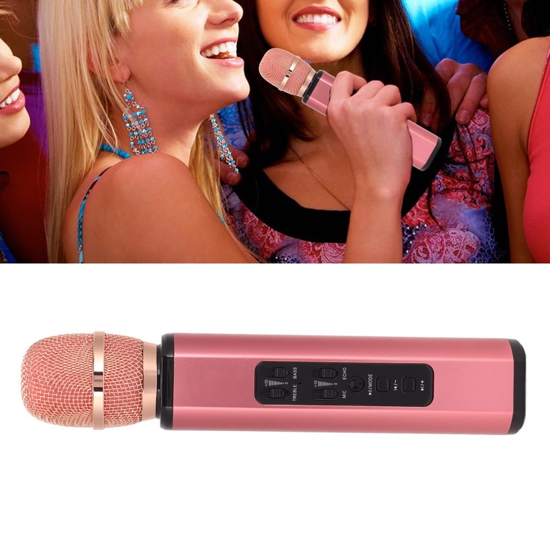 Wireless Microphone, Portable Bluetooth Microphone, Microphone Speaker, Compatible with Vocal Applications, Karaoke Vocal Microphone for Car Singing Home KTV for PC Smartphones (Pink)