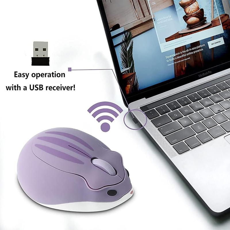 Wireless Mouse, 1200DPI Low Noise Mouse with USB Unified Receiver,Silent Cordless Mouse, Cute Hamster Shape Mouse ,Lightweight and Portable for PC/Mac/Laptop, Gift for Kids and Girls(Purple)