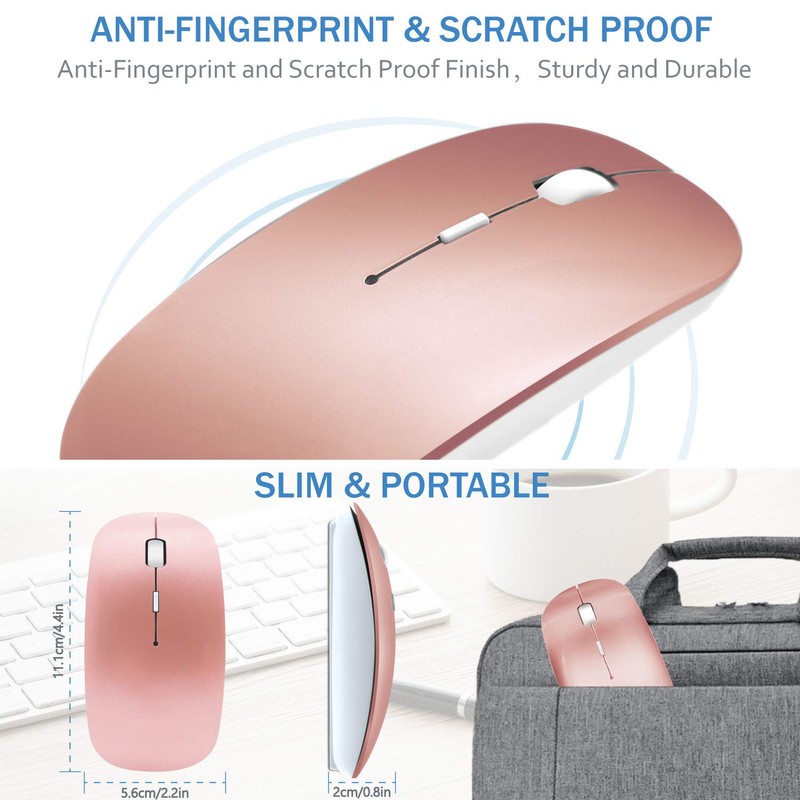 - Dual Wireless Modes:Wireless bluetooth mouse connect via Bluetooth or 2.4GHz USB receiver. Compatible with Mac Pro MacBook Air Apple iPad laptops PCs tablets.Seamlessly switch between work and personal devices — ideal for students, professionals, travelers, and remote workers who need reliable performance at home, in the office, or on the go.