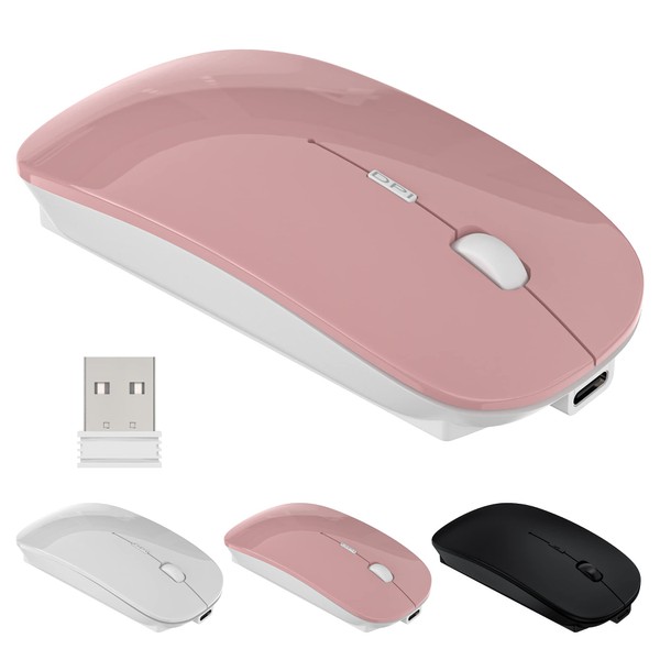 Wireless Mouse for MacBook, Laptop and Pc- Silent Clicks, ErgonomicRechargeable Design, 2.4GHz USB Mouse with Mini Receiver, Compact andComfortable for Work, Study or Travel (Pink)