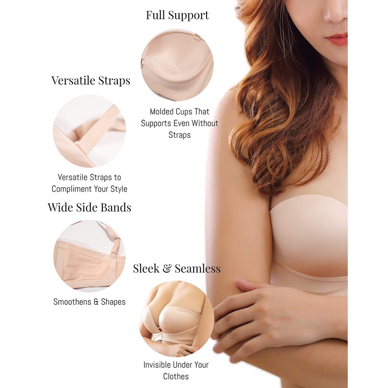 Wireless Multi Way Strapless Bra - Sculptural Mold Cup (Padded) Deep V No Wir...