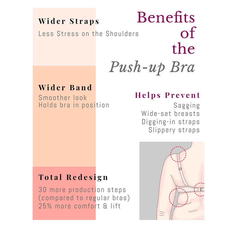 • 4-ROW By 4-STAGE Back Closure, Wirefree Push Up Bra For Smaller Busted Women Of A To C Cup.