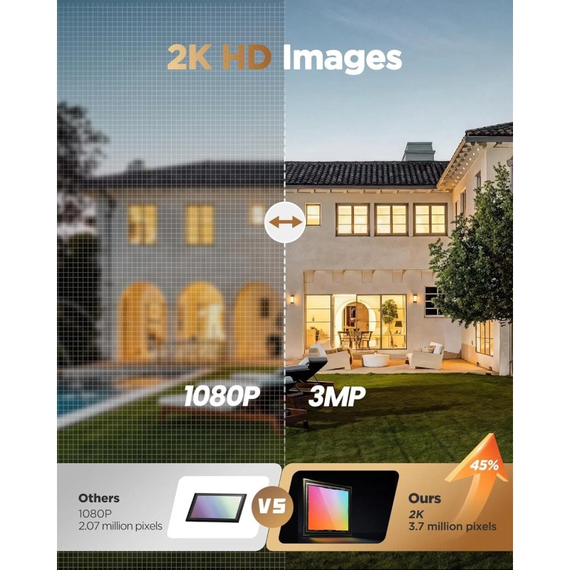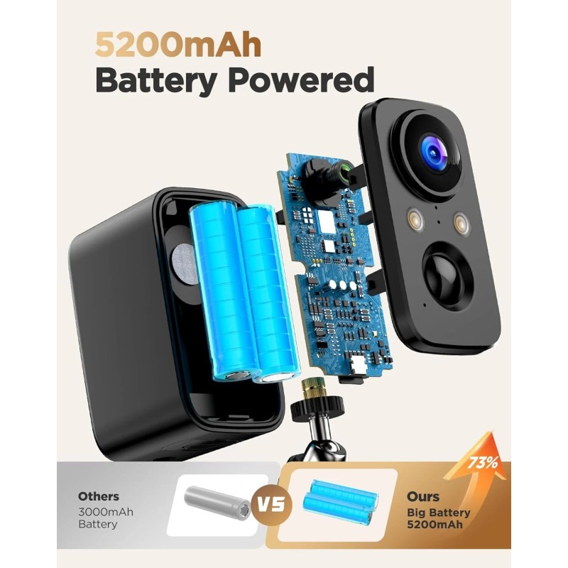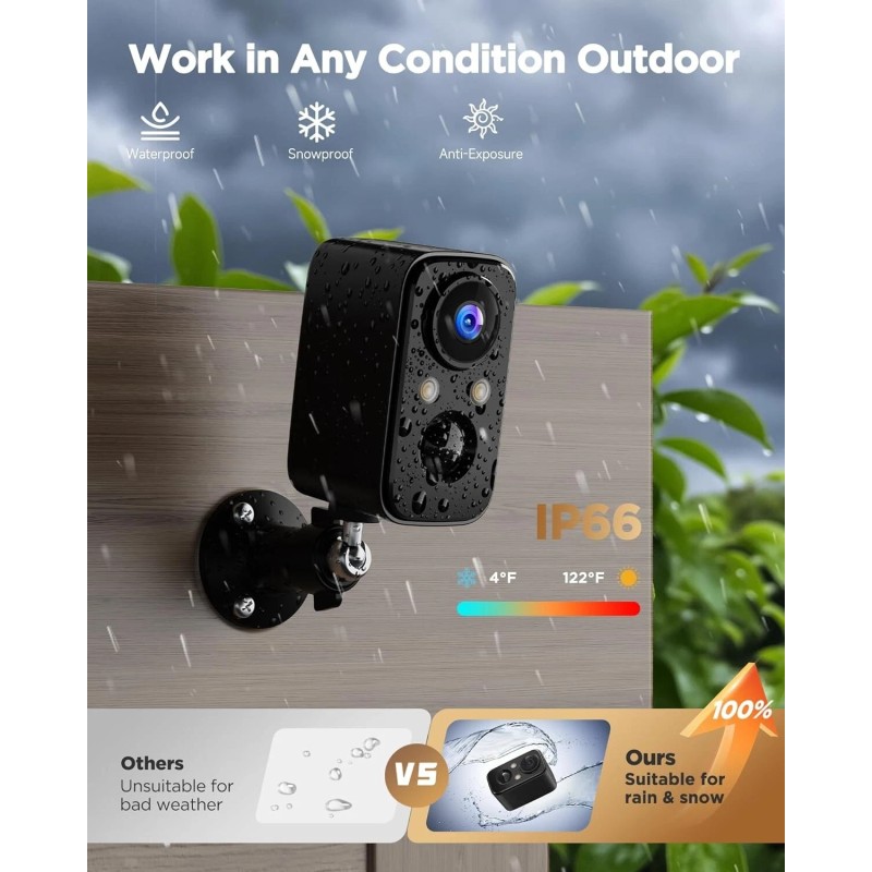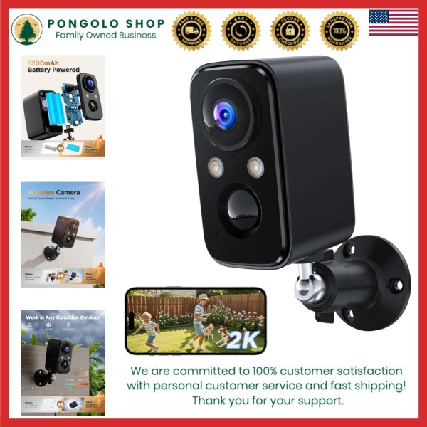 Wireless Outdoor Security Camera Battery Powered 2K Night Vision Waterproof