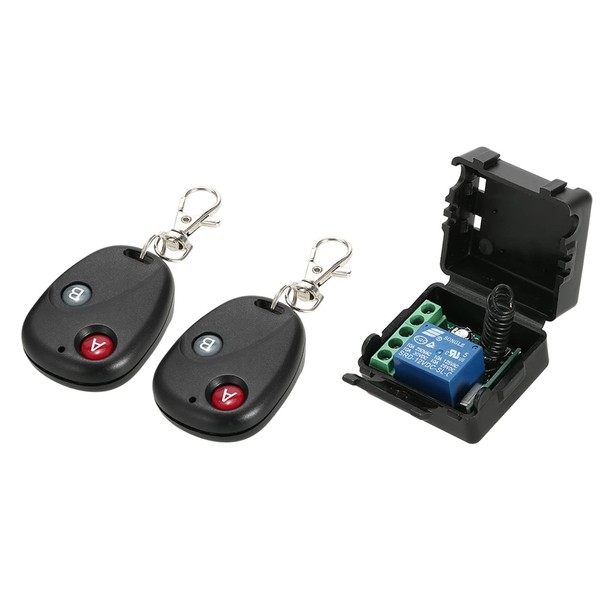 Wireless Remote Switch, Smart Home 433Mhz DC 12V 1CH Wireless Remote Switch Relay Receiver Transmitter Universal Remote Control Switch Module and RF Transmitter Remote Controls Black Pack of 2