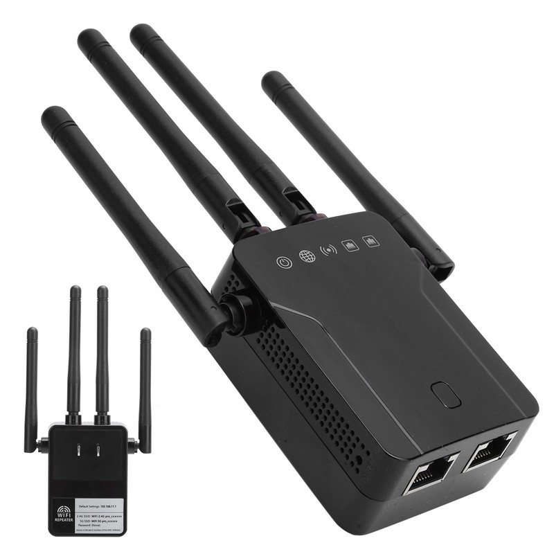 Wireless Repeater Black Dual Band WiFi Signal Network Extension Amplifier