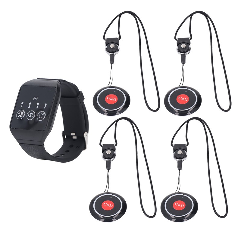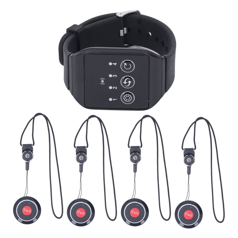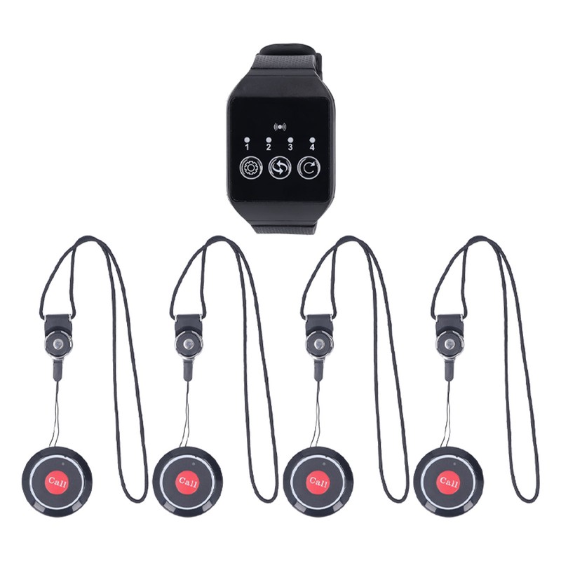 Wireless Restaurant Service Calling System 1 Watch and 4 Button Pagers Waterproof Restaurant Pager System for Restaurant Hospital Hotel