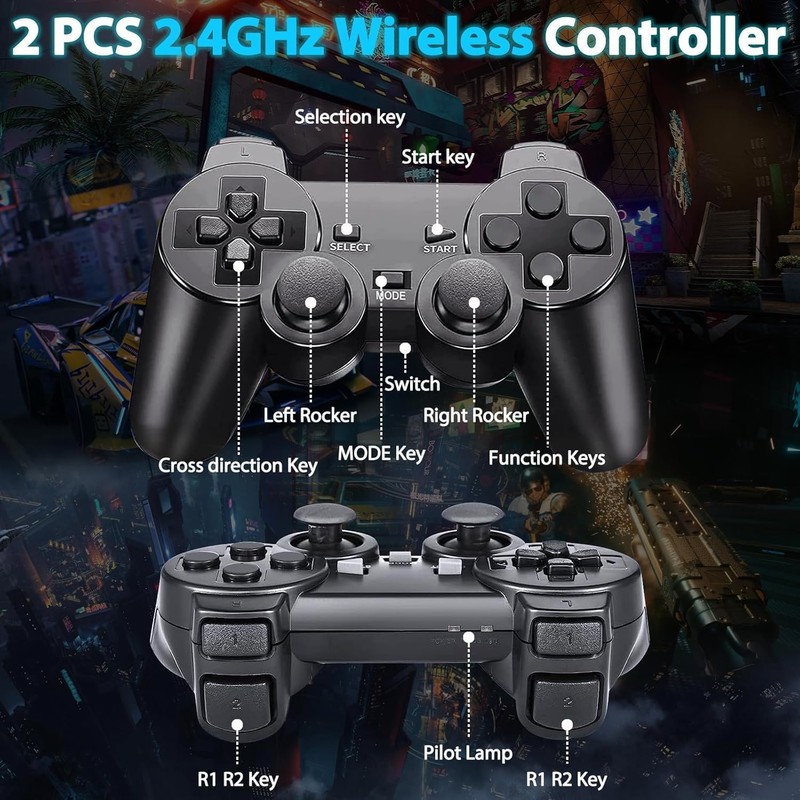 • 【2.4GHz Wireless Controllers Support 2 Players】Wireless controller adapters that offer stable connections with almost zero latency. The maximum connection distance is 32.8 ft,2.4GHz wireless game controller with stable connection, you can play it anywhere in your living room without worrying about being too close to your view. (2 wireless controllers need to install 4 AAA batteries, not included in package)