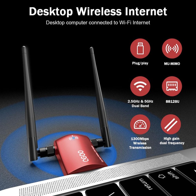 - High-Speed 1300Mbps USB WiFi Adapter: This WiFi adapter offers long-range, no delay, and stable WiFi connections, upgrading your PCs or laptops to 802.11ac standards, which are three times faster than built-in wireless adapter speeds.