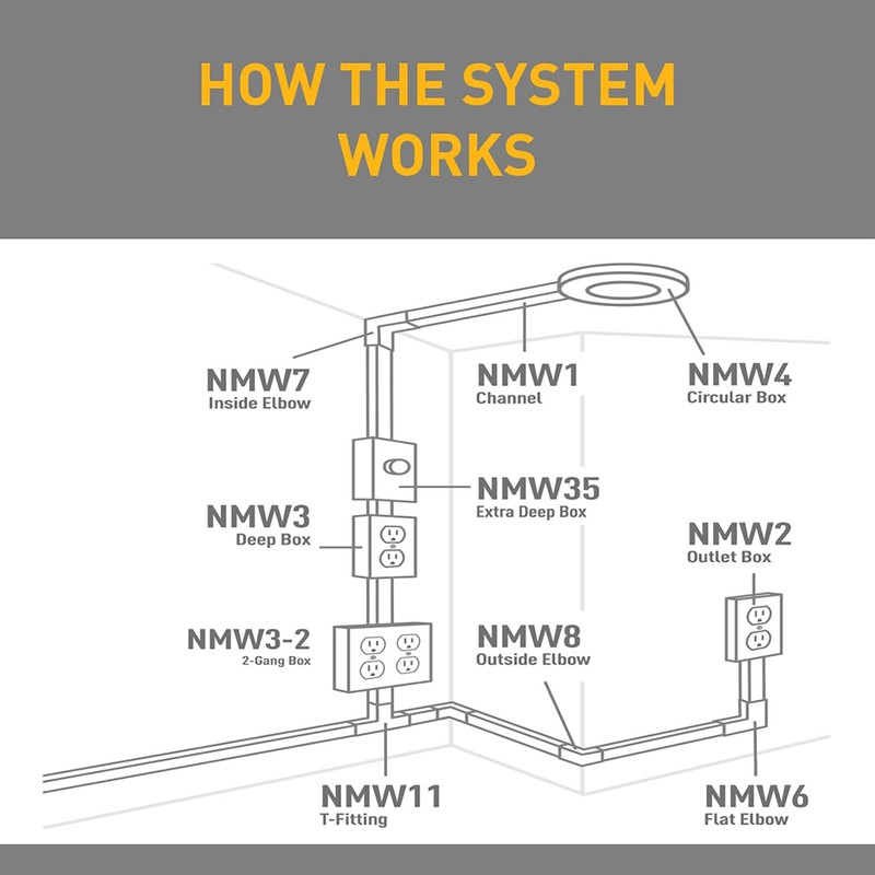 Wiremold Plastic Nonmetallic Raceway, Extending Power, On-Wall T-Fitting, White, NMW11 (Pack of 2)