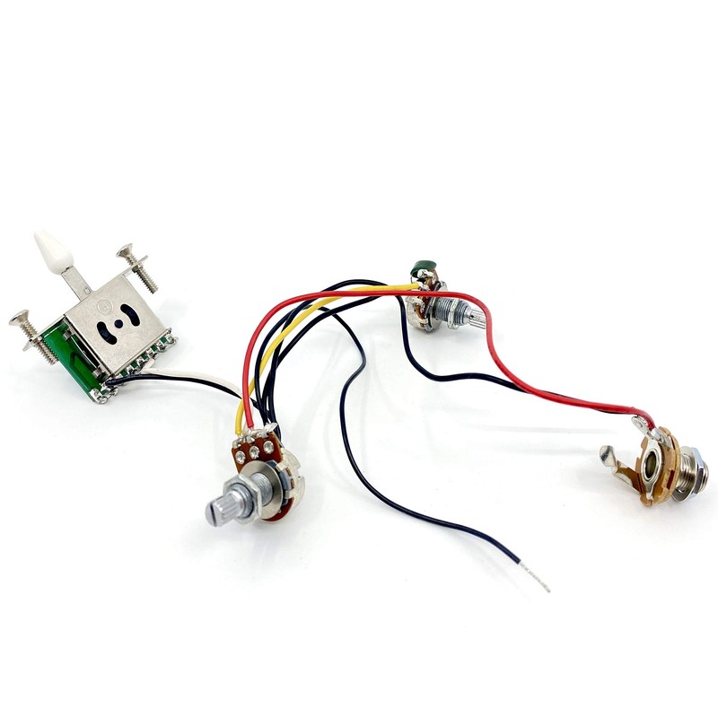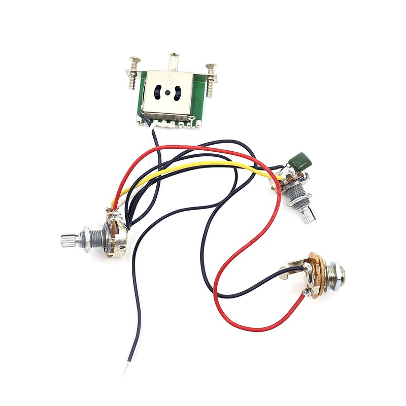 - 1 x Volume 250K A-curve mini pot, 1 x Tone 250 B-curve mini pot, 3-way lever switch, Standard output jack