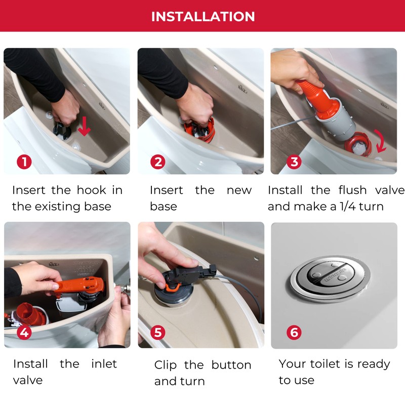 - Water saving, up to 6 litres of water per day for a family of four: delayed filling