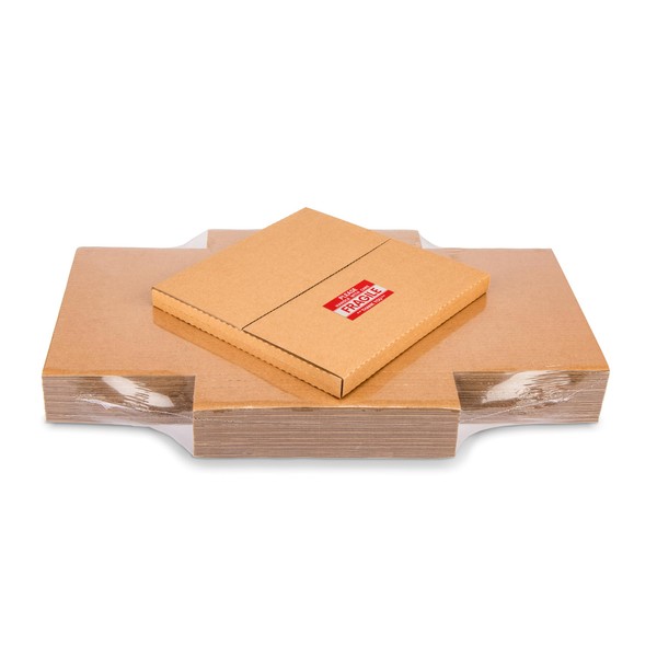 Wisaiboxl Kraft LP Mailers, 12.8x12.8x1 inch, Easy-Fold, Multi-Depth Vinyl Record Shipping Boxes with Fragile Stickers, 15 Pack