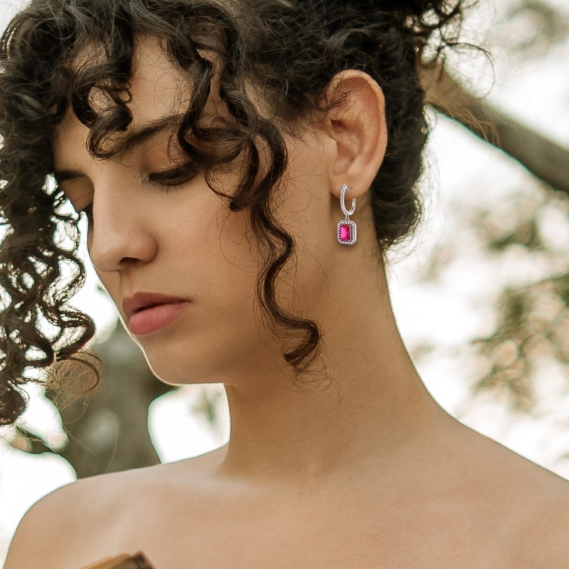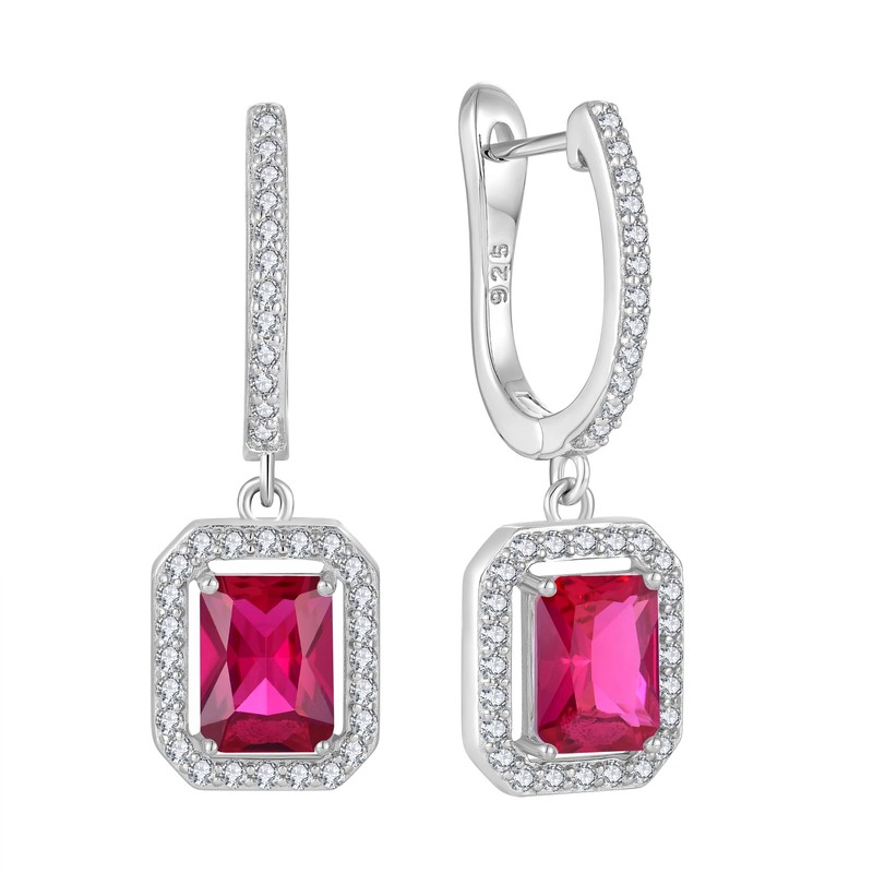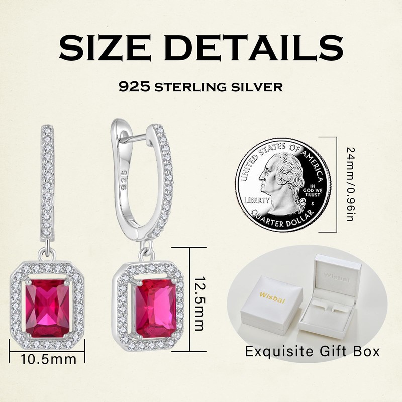 Wisbal Women's Solitaire Dangle Drop Earrings 925 Sterling Silver Pure Square Huggie Earrings Created Ruby Hoop Dangle Drop Earrings