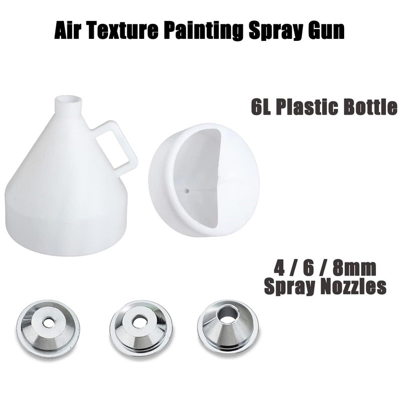 - 4 / 6 / 8mm Spray Nozzles - 3 nozzles for choice which you can make different textures for the bathroom ceiling and all the walls.