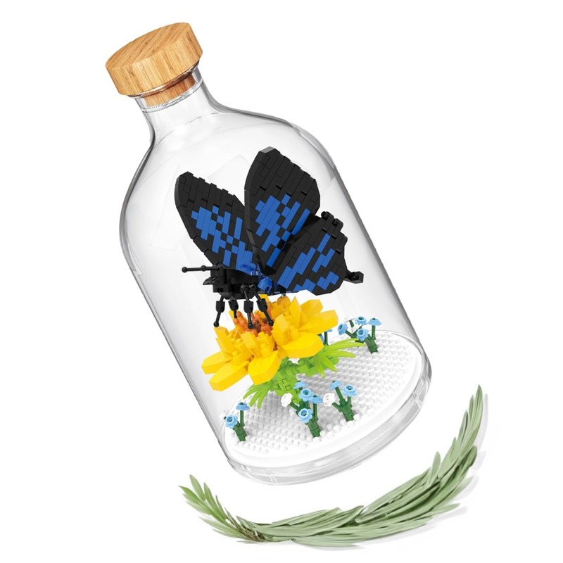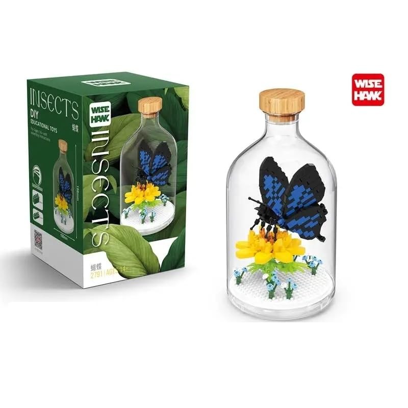 WiseHawk Kit of miniature blocks to assemble insects and small animals. Includes methacrylate bottle to protect the construction. Butterfly