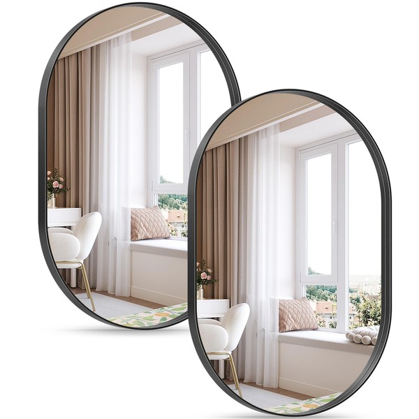 Wiserset 2 Pack Black Oval Mirrors, 20" x 33" Double Modern Mirror for Living Room, Black Frame Mirror for Over Sink Bedroom Fireplace Entryway Hang Vertical and Horizontal