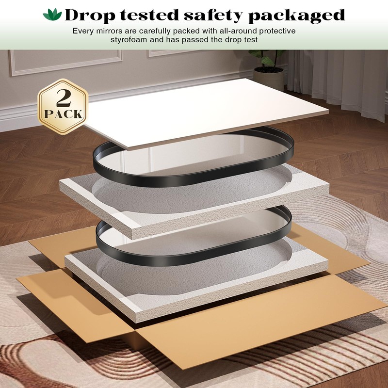 - Safe Packaging: Each black-framed oval mirror is carefully packaged with comprehensive foam protection and successfully passes drop tests, ensuring it arrives in nice condition
