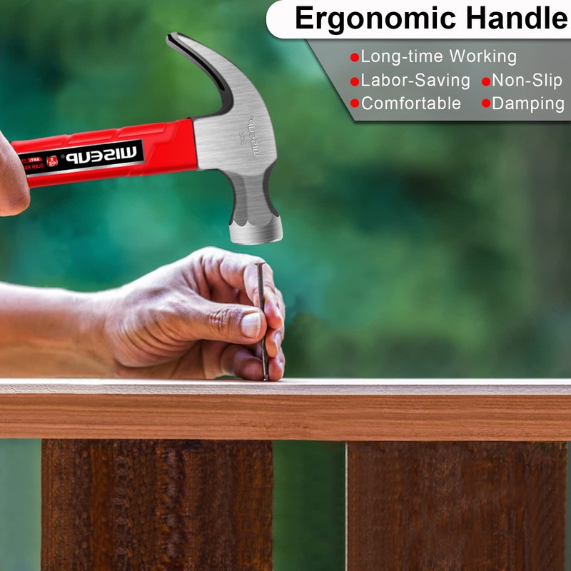 WISEUP Hammer, 226 g (8 oz) shock-absorbing claw hammer, forged by carbon steel, labour-saving handle, rust-proof, durable carpenter's hammer