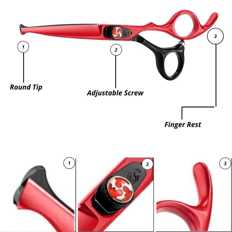 Wishbeauty Professional Hair Scissors - Hair Cutting Scissors Professional - 6.5” Overall Length - Razor Edge Barber Scissors for Men and Women - Premium Shears for Hair Cutting (Red & Black)