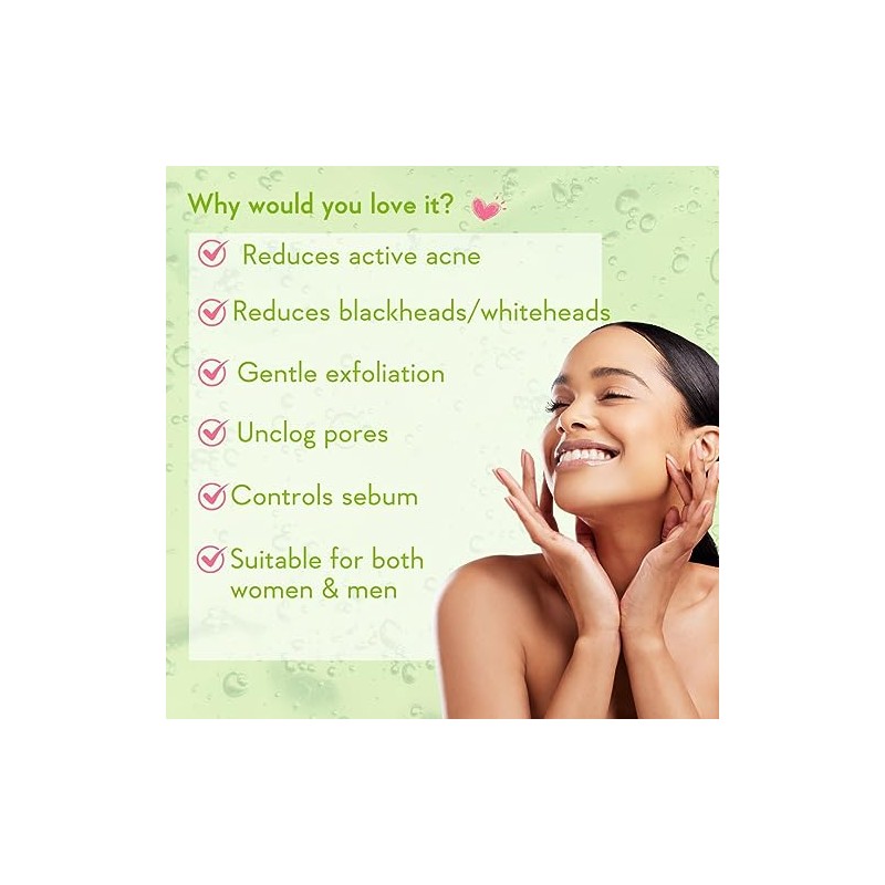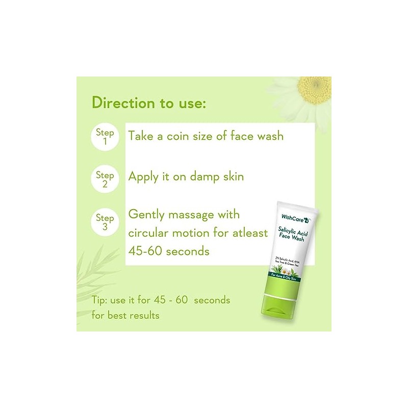 WishCare- Gel limpiador facial con ácido salicílico al 2% con AHA, té verde, manzanilla y árbol del té: para controlar la grasa y el acné