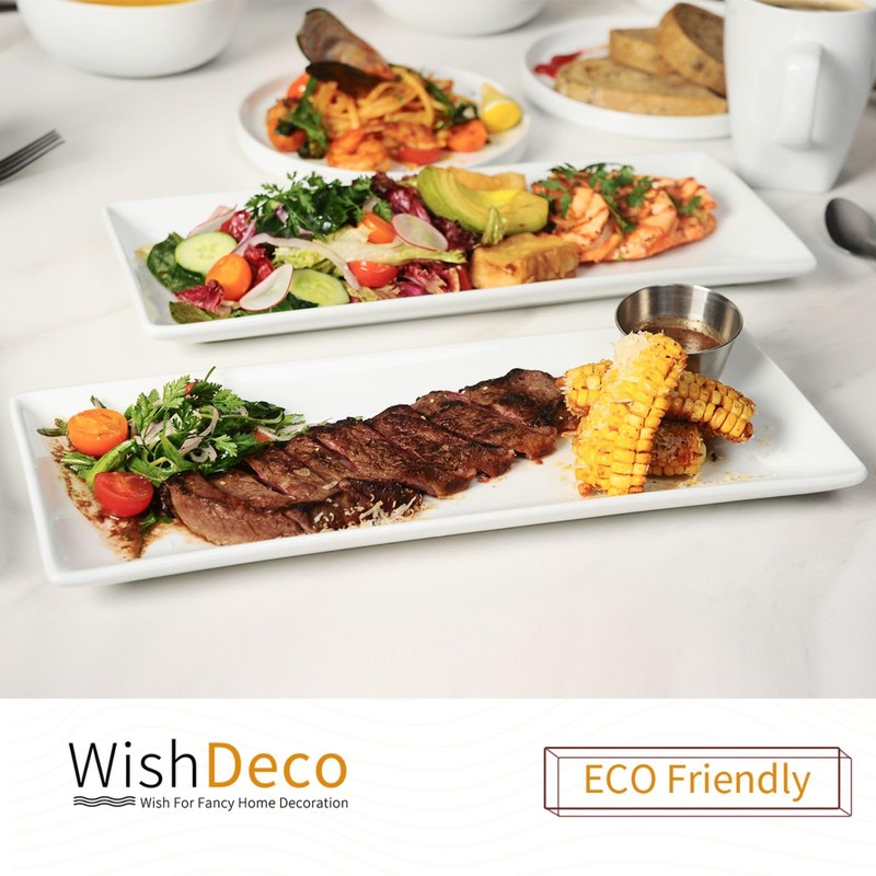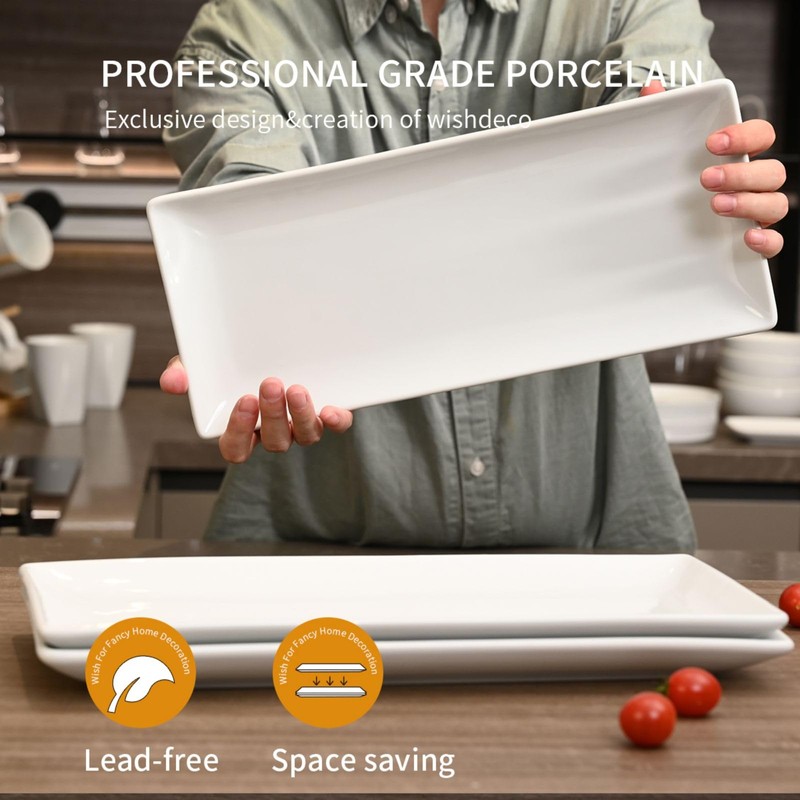 - Safe Use: Fired in high temperatures, not easy to be broken. The small rectangle platters set are safe in the oven, freezer, dishwasher, and microwave. And the rectangular plates won’t become very hot after being heated in the microwave. Non-sticky clear glaze surface is easy to clean