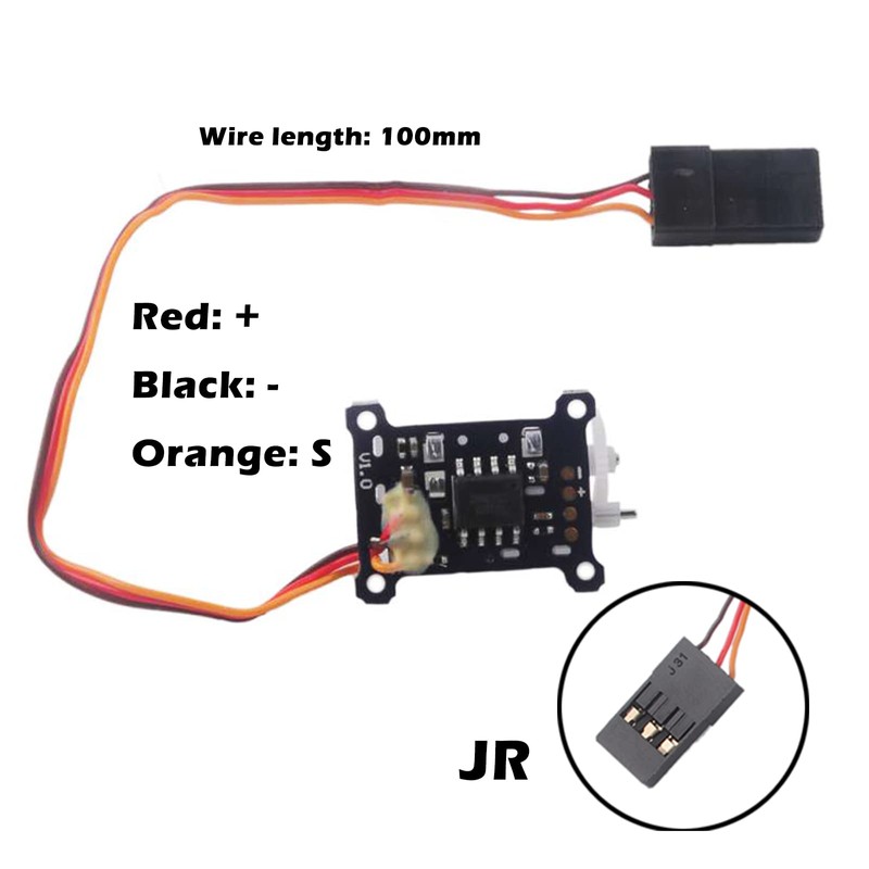 JR connector: Red +, black -, orange S