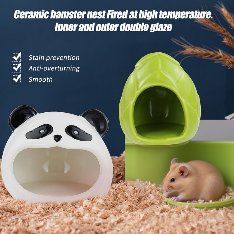 Tips: Panda ceramic hamster hideout opening is 2.95 x 1.57 inch. Bamboo shoot ceramic hamster hideout opening is 2.2 x 2.17 inch. Please measure the size of your pet before buying to ensure that it can enter and exit smoothly