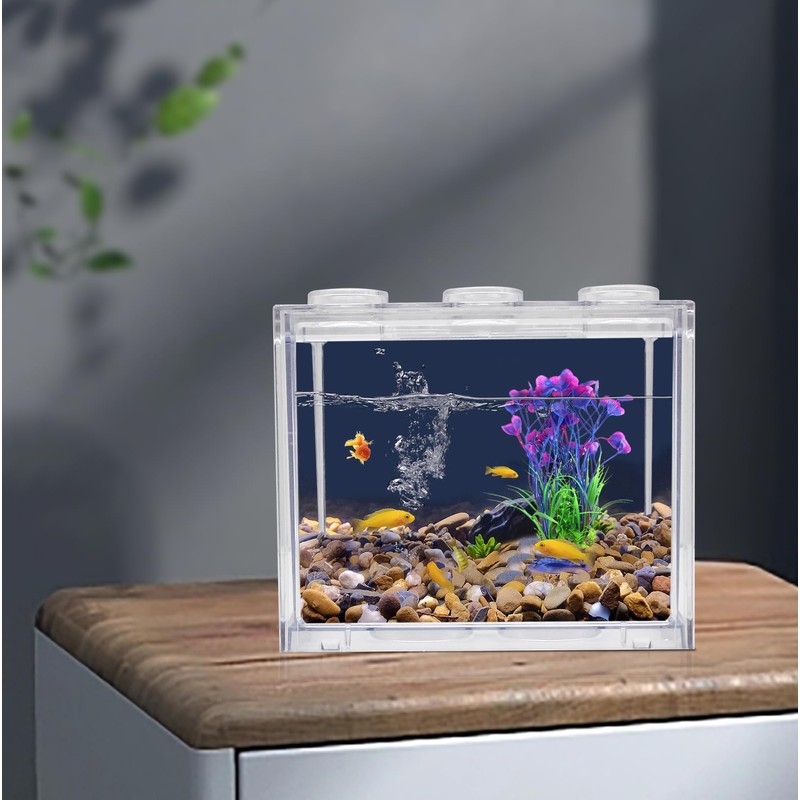 1.The block shaped fish fighting tank has a unique and creative design that blends the fish tank with the blocks for added decoration and interest.