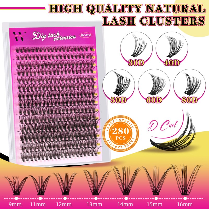 - Natural eyelash clusters: perfect 30D mix 9-16 mm 280 pieces eyelash clusters in a tray. Make your eye makeup look very real and plastic free. These eyelash clusters are soft, tangle-free and matte, perfect for natural and stunning eyes. With proper care, the individual eyelashes can be reused for long-lasting beauty.