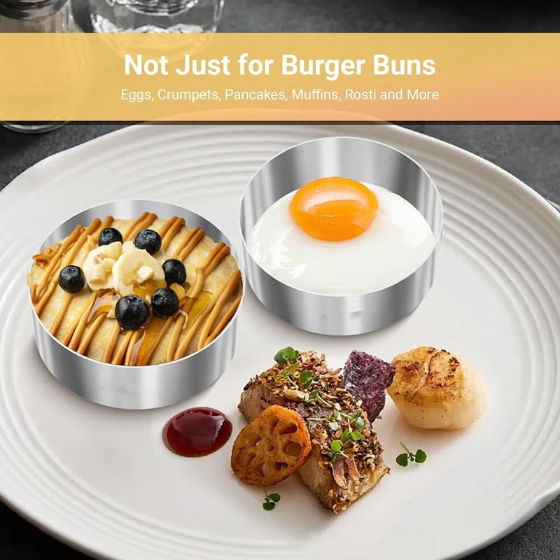 - Versatile Kitchen Tool: Not just for burger buns, these molds are perfect for crafting fried eggs, crumpets, pancakes, and muffins. Their versatility makes them an essential addition to any kitchen, enhancing your breakfast and snack preparations.