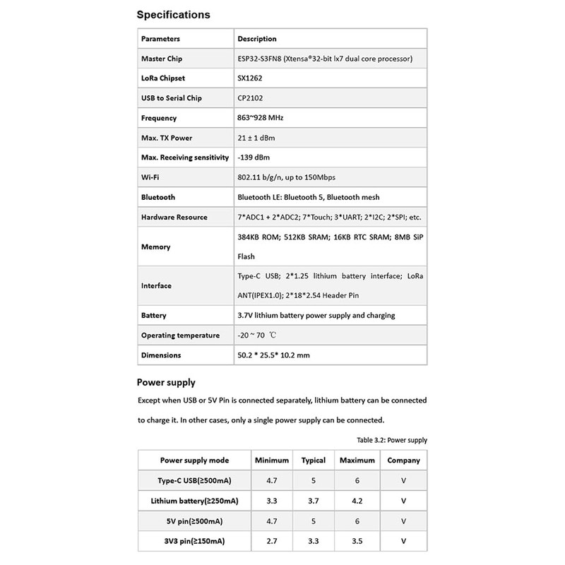 • WiFi LoRa 32 is a classic IoT dev-board , it has been loved by developers and makers. The newly launched V3 version has the same pin sequence as the V2 version and retains Wi-Fi, BLE, LoRa, OLED display, and other functions.