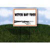 WITCH HAT TOSS Halloween Skeleton Right Arrow Single Sided 18x24 in Yard Road Sign w/Stand