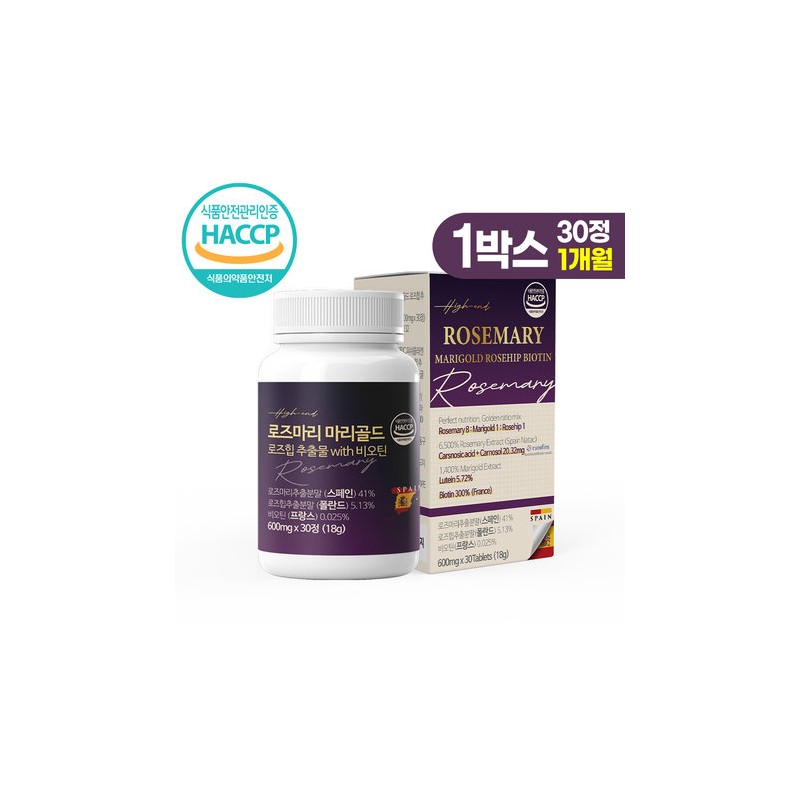 하이엔드 로즈마리 마리골드 로즈힙 추출물 with 비오틴 600mg x 30정 1박스 분말 가루 비오틴