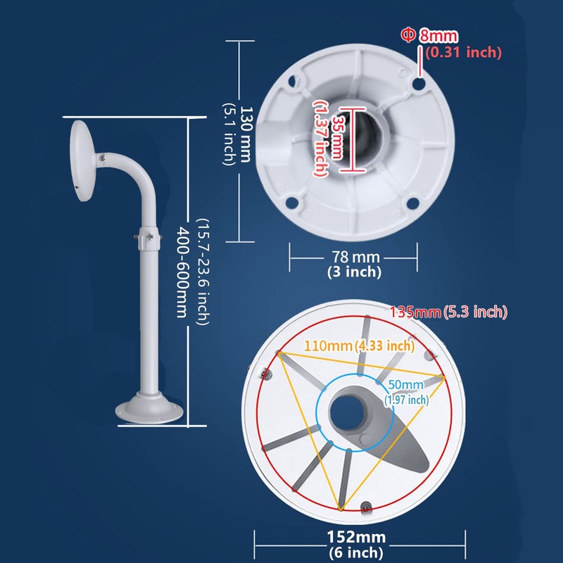 - Mount diameter 6 inch; Pole Length: 15.7-23.6 inch adjustable