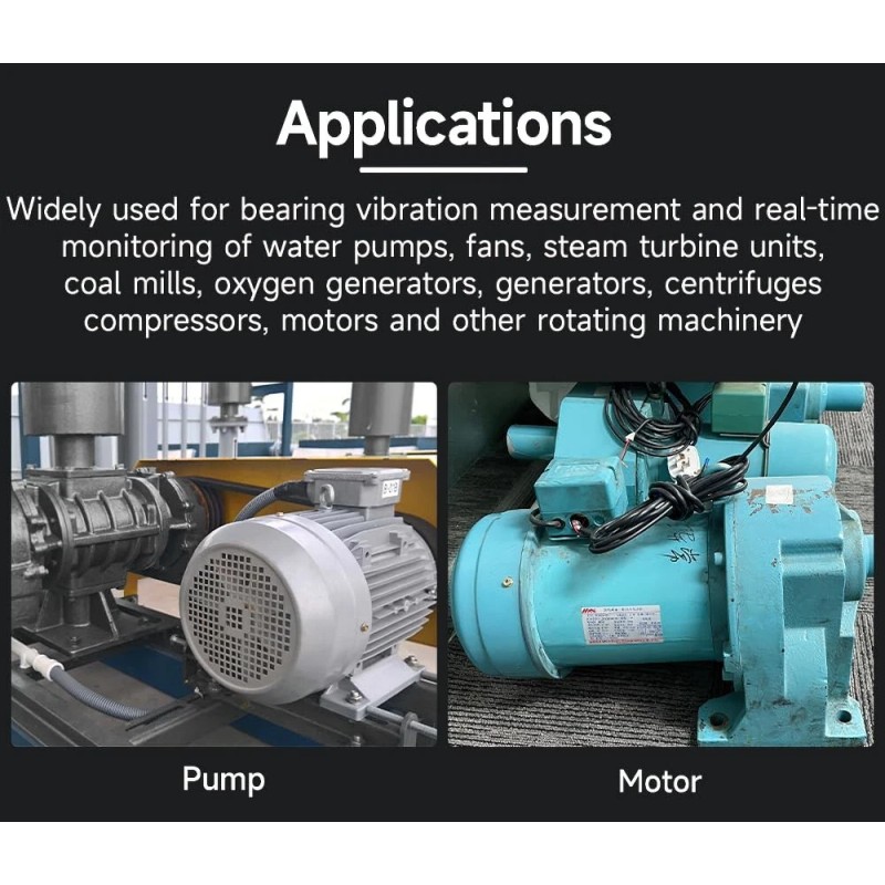 e. Function: Widely used in bearing vibration measurement and real-time monitoring of submersible pumps, fans, steam turbines, coal mills, oxygen generators, generators, centrifuges, compressors, water pumps, motors and other rotating machinery.