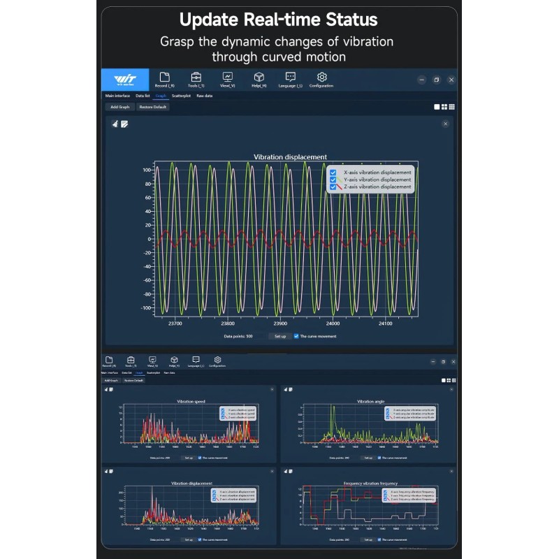 【Analysis Vibration Sensor System】Condition monitoring and vibration analysis are seamlessly integrated with WITMOTION PC software, making it quick and easy to analyze and visualize data. Maintenance teams can set it up as needed.