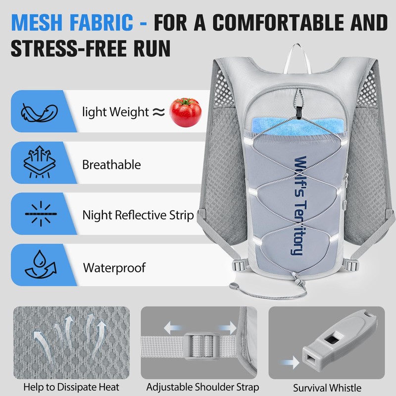 Witnewrage Running Vest Men & Women - Ultralight, Breathable & Adjustable, Hydration Backpack Running with Reflective Lines, 2L Water Bottle & Sports Armband for Safe Running S/M (Grey)
