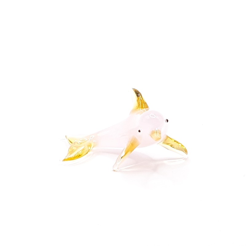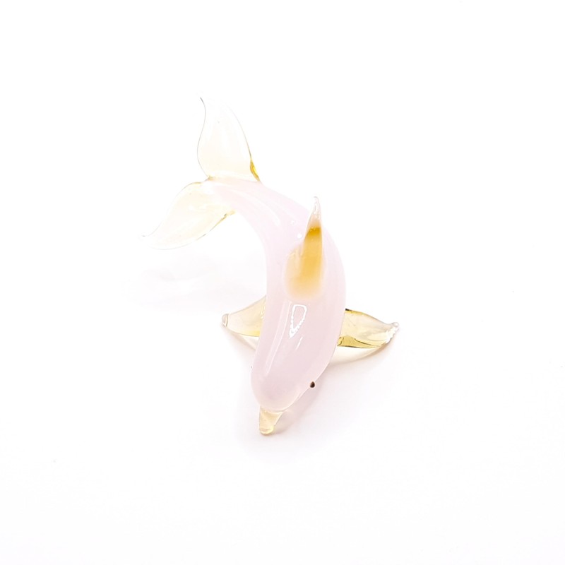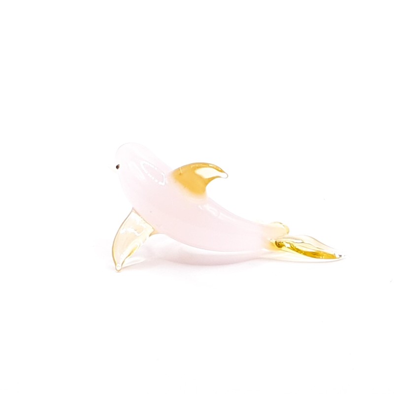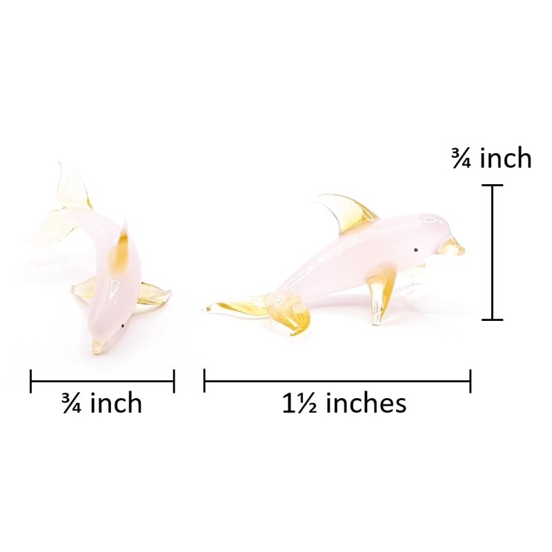 WitnyStore Tiny 1½" Pink Yellow Dolphin Bend Tail Figurine - Miniature Hand Blown Glass Dolphins Porpoises Marine Mammal Aquatic Sea Animals Fish Cute Crystal Decorative Collectible Figure Décor Gifts
