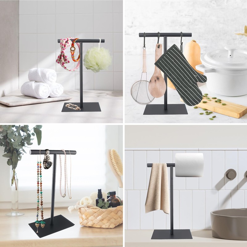 - MOVABLE: The hand towel holder stand adopts freestanding t-shaped design and can be placed on or moved to the countertop of any room. It is very suitable for damp environments such as bathrooms and kitchens