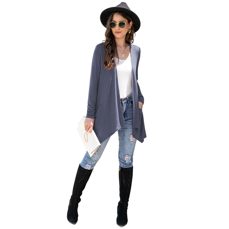 - Practical Design: This trendy long sleeve open front cardigan for women features two sides pockets, and the slanted pocket design fits your hands better and can bear more pressure, so that you can easily put your hands into the pockets, very relaxed. And handy to store keys or other lightweight needful items when strolling or working. And the design of High Low Hem looks stylish and unique. Cozy up all years around in our fashion draped cardigan for women.
