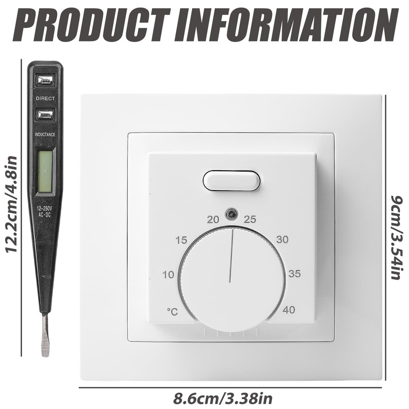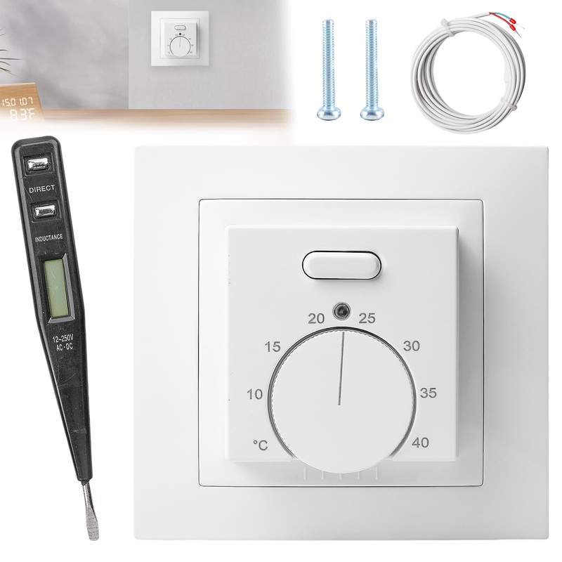 WIYETY Room Thermostat Underfloor Heating with Induction Test Pen: Standard Thermostat Flush-Mounted, Manual Room Temperature Controller Analogue Heating, Mechanical Thermostat, Electric Underfloor