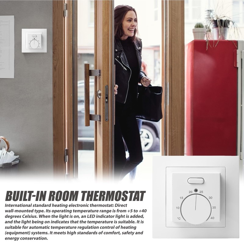 - Wide application: the room thermostat underfloor heating is versatile and is suitable for various heating systems, especially electric underfloor heating. Whether in living rooms, offices or commercial areas, this thermostat provides reliable temperature control for any environment. It is the perfect solution to ensure pleasant and constant warmth in different rooms.