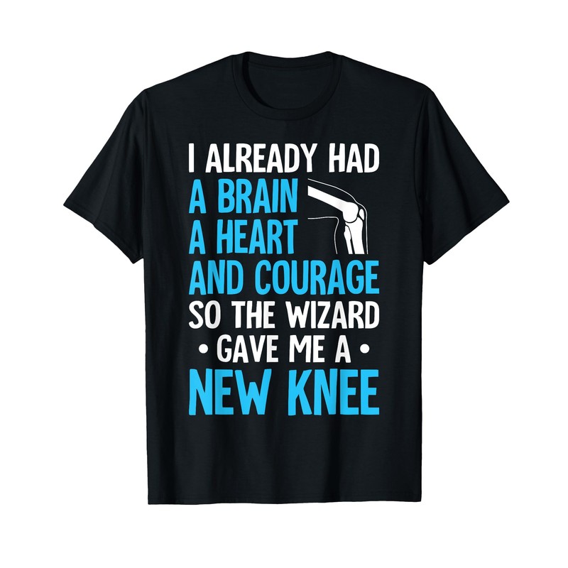 • This "I already had a brain, a heart, and courage so the wizard gave me a new knee" motivational design is for knee surgery patients, warriors, or survivors. Great knee surgery recovery gifts for those who have had knee surgery or knee replacement.