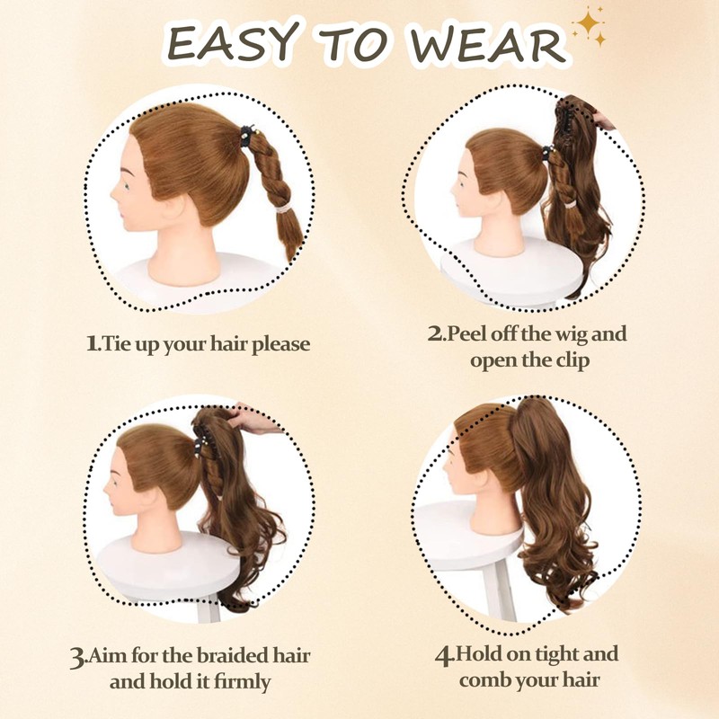 - High-quality, heat-resistant material: the ponytail hairpiece is made of high-quality, heat-resistant fibres that are soft to the touch, not easy to knot and have a natural shine. It is lightweight and airy, breathable and comfortable to wear without irritating the skin.