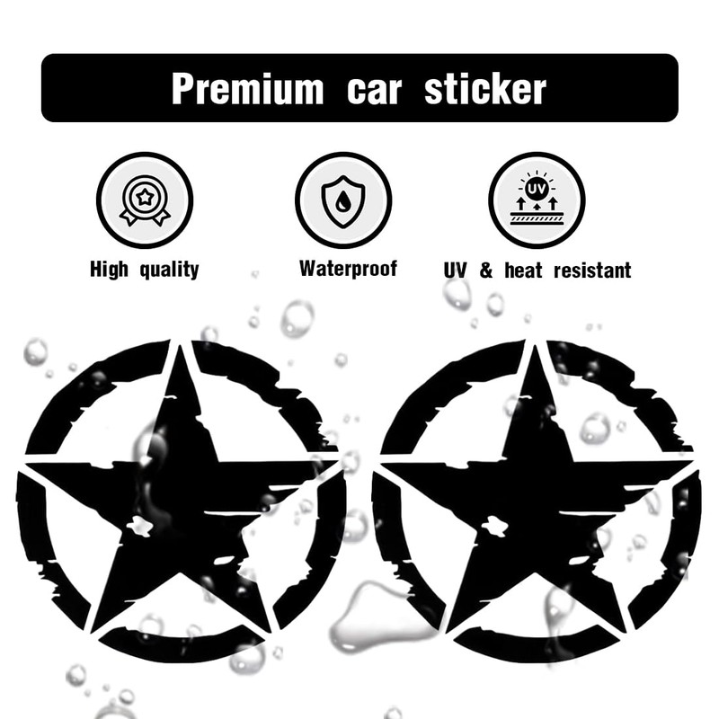 WKRTDY 2 x Modified 5-Pointed Star Vinyl Stickers for Offroad Outdoor Vehicles, 15 x 15 cm, Ideal for SUVs, Trucks, Motorcycles (Black)