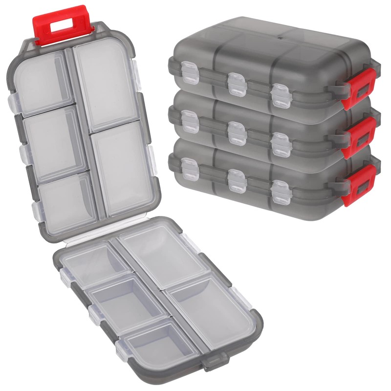 WLLHYF 4 x Travel Pill Box Small Daily Use Moisture Resistant Container with 10 Compartments Vitamin Container for Various Medicines (4 Black)