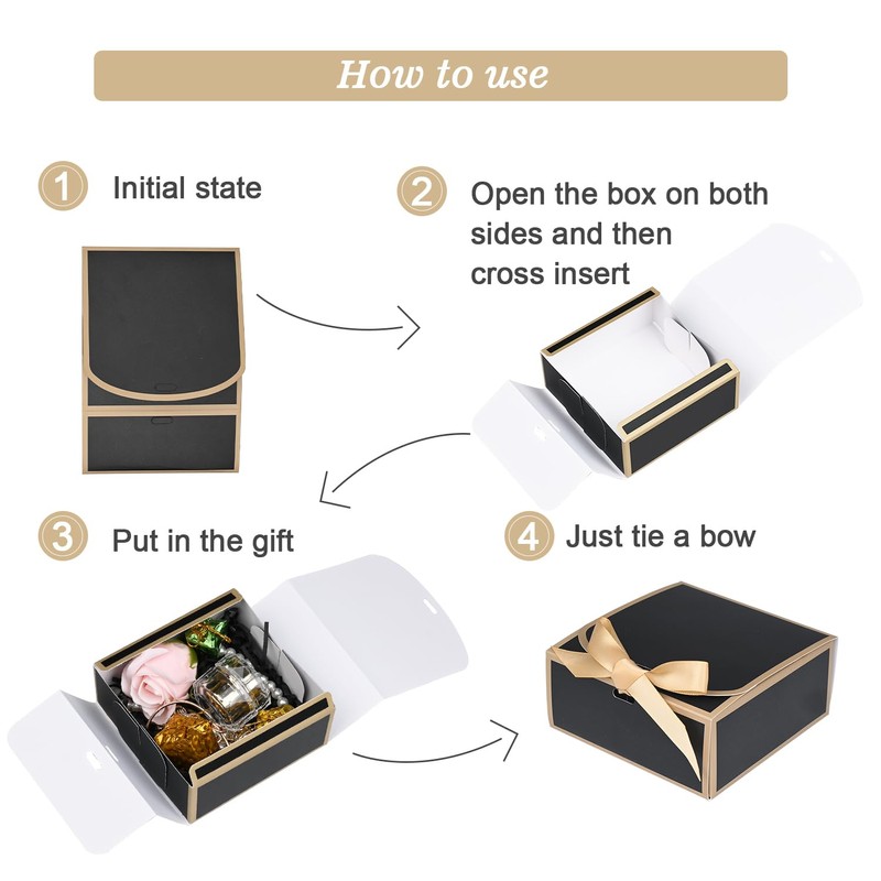 - Super Easy Setup & Storage: Forget the fuss of complicated packaging! Our gift box small fold together in seconds – no glue, no scissors needed! Thanks to their flat-pack design, storing them is a breeze. Just fold them flat when you're done and save tons of space.