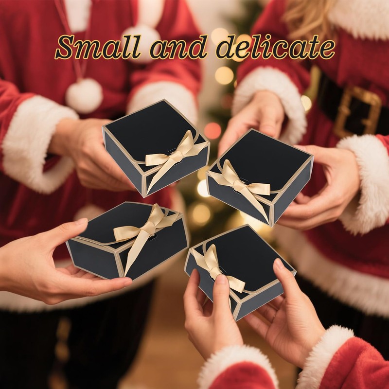 WLUSEAXI 12Pack Small Gift Boxes with Lids, 4.5''x4.5''x2'' Small Boxes for Gifts with Ribbons, Black Gift Boxes for Present, Birthday, Valentine's Day, Mother's Day, Holiday