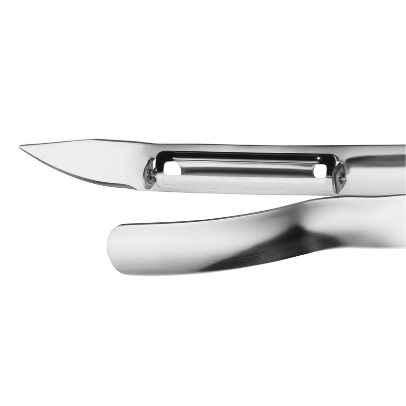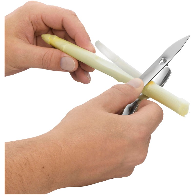 - The flexible blade peels the asparagus thinly and evenly.